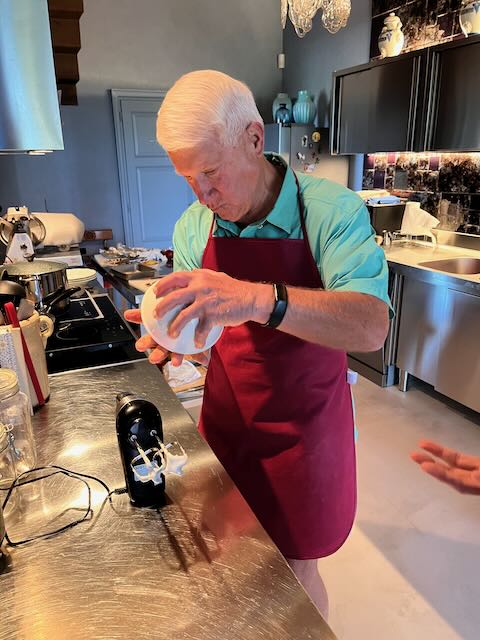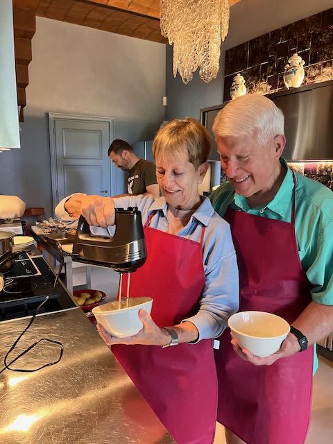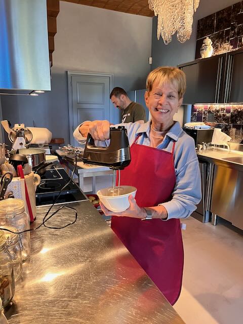 The class was fantastic. We started out making Tiramisu which he makes a little differently than most. Tiramisu first because it must sit for several hours before being served and since we would be starting at 11.00 and eating around 1:00, we’d barely have adequate time for the Tiramisu to set. As a post script, the tiramisu we saved and ate for supper was much better than the servings at the end of lunch.