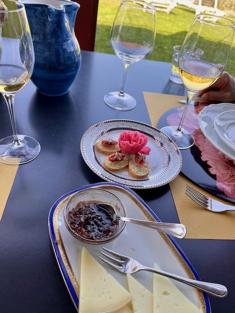 Now, observe the glass of white wine. That is zero kilometer wine. Scroll back up to any of the top photos and look for the vineyard. The grapes used in that wine were from those vines, hardly a kilometer away!