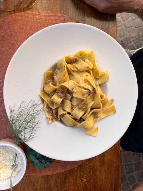 Jim had tagliatelle pasta & cinghiale (wild boar) ragu. Cinghiale are as ugly & mean as the javelina in Arizona. The ragu was very good though!