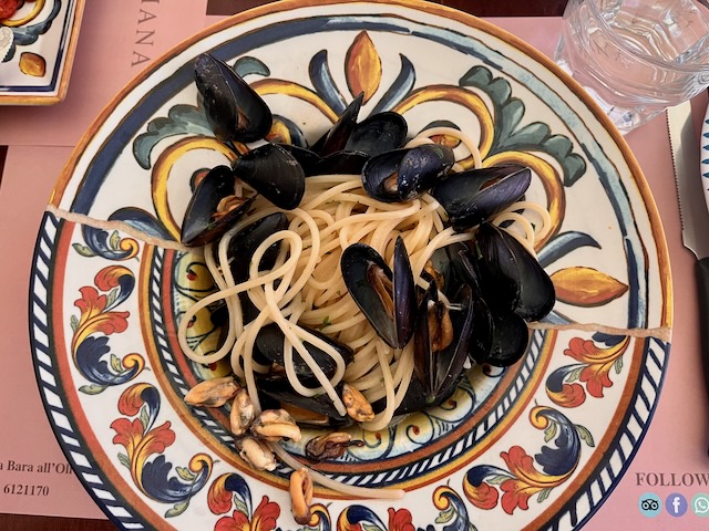 I had spaghetti and mussels, some of the best I’ve had, and we were on the street in an alley!