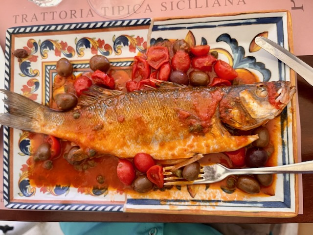 While falling into the slow life quite comfortably, we still had two tourist-type objectives for which we transitioned to Naples and then Sicily: Herculaneum and Pompeii from Napoli and Segesta and Erice from Palermo, not to overlook seeing our friend Salvo, our fruit & veggie man, in Palermo. Since Segesta a week and a half ago, siamo stati Siciliani (we’ve been Sicilian.) There has been the walk to the panaficio each morning to pick up fresh (and warm) bread (Palermo bread is our favorite bar none) which might also require a stop for due caffè and a cornetto or donut. There have been the one and a half to two hour lunches or dinners depending on our day. We’ve been able to continue with our heart and blood supplements – vino rosso. We’ve even watched the ships come in to the port, feet up and the afternoon sun warming us. Oh, and just when you think things can’t get any better, the weather here has been marvelous. 65-68º in the early morning, 73-75º in the afternoon, and on some, but very few days, rain showers for maybe 30 minutes either in the early morning or late afternoon. Perfetto! This is exactly what we planned. Start in the North (Tuscany) and move South (Sicily) as the temperatures begin their transition into the Autumn season.