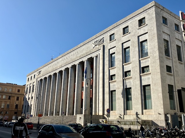 Jump off or climb on the bus here at the Palazzo delle Poste. The style of the building is typical of the fascist period. (Work began in 1929 and was finished in 1934.