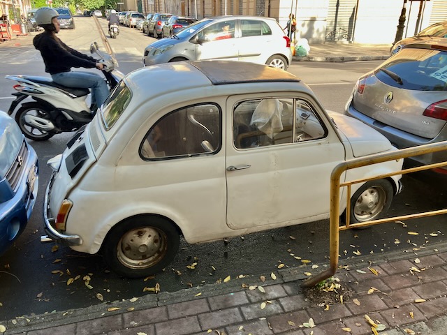 From our walks up to the Mail Boxes, etc. store today, a couple of thoughts related to home popped up. The first relates to how few of us, and almost no one in the United States, can parallel park any more. Seems these guys got it down.