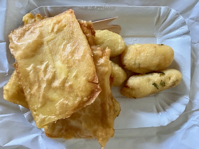 Panelle (the squares) and Crocchià (sausage-sized) – deliziosa!